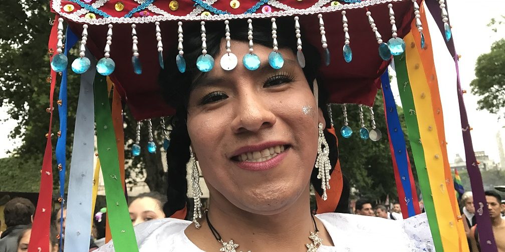 “Soy docente. Esta es mi marcha número 21. Creo que la sociedad ha evolucionado porque ahora puedo defender mis derechos. Antes venía con una máscara porque tenía miedo y ni mi familia ni mis amigos sabían sobre mi identidad de género, cómo me asumía. Vengo a la marcha en solidaridad con todas las personas que son discriminadas, no sólo de la comunidad LGBTI y a reclamar todo lo que nos corresponde». (Juan Pablo)