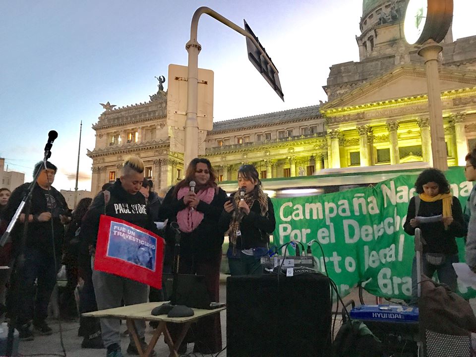 Una de las más aplaudidas fue Daniela Inojosa, de la organización La araña feminista de Venezuela y coordinadora del Movimiento Alba. “Allá como acá, la heteronormatividad y el androcentrismo dictan las pautas sociales y legales. Así como ustedes tienen a Higui, nosotras allá hemos tenido compañeras y compañeros del colectivo perseguidos, presos y asesinados. Todo el tiempo estamos defendiéndonos de los ataques y el odio a la diversidad sexual. ¡Gracias por luchar por Higui! Cuentan con nuestro apoyo, el del movimiento feminista latinoamericano», dijo Inojosa. También tomó la palabra y fue ovacionada Alma Fernández, directora del Centro de Estudiantes del Bachillerato Popular Trans Mocha Celis: “El colectivo trans también está siendo perseguido y atacado. Apoyamos el pedido de justicia y libertad para Higui, apoyamos estas consignas, pero no nos olvidemos de todas las compañeras trans que están siendo golpeadas todos los días y nadie se entera”, dijo. Y terminó cantando: “Olé, Olé, Olé, Olá, para la Higui la libertad, organizadas ya te vamos a sacar” acompañada por la multitud.