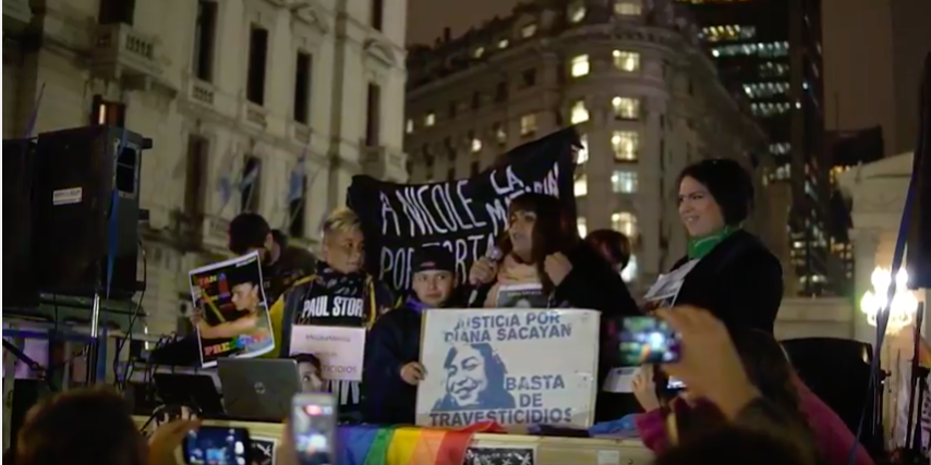 Más de dos mil personas marcharon en el Día Internacional del Orgullo LGBT desde Plaza de Mayo hasta el Congreso argentino para decir: basta de travesticidios.