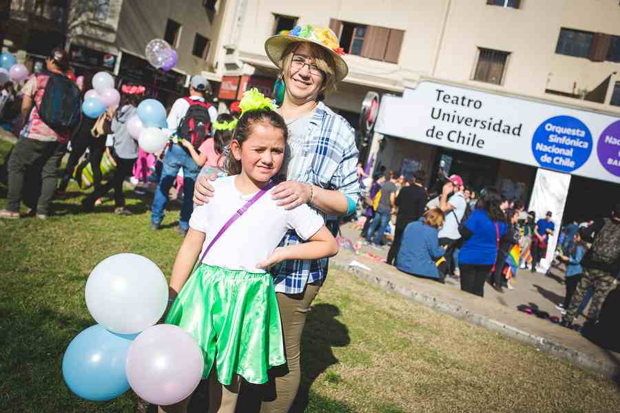 La marcha por el orgullo LGBTI tomó las calles de Santiago en una verdadera fiesta de la diversidad. Y fue algo que se respiró en el aire mucho más allá de lo pintoresco y vibrante que suelen ser estos encuentros. Esta vez, la presencia familiar estuvo muy marcada. Lxs niñxs sobresalieron entre una multitud de disfraces, glitter, maquillaje y perfomance, bajo un sol radiante del “veranito de San Juan”. Gente de todas las edades, familias enteras, madres con bebés recién nacidos en brazos, padres con sus hijxs adolescentes, parejas con mascotas, grupos de jóvenes que bailaban y cantaban al ritmo de los bombos y tambores, chilenxs y extranjerxs.
