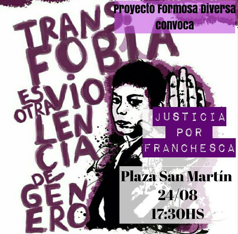 El ataque fue tan solo tres días después del concurso Miss Trans Formosa, un encuentro al que Franchesca había asistido. “Ahora está mejor, con su mamá, que viajó desde Clorinda, de donde es Franchesca, y es posible que hoy la pasen a sala. Está fuera de peligro pero perdió un ojo. Después va a tener acompañamiento psicológico porque todavía está en shock, atentaron contra su vida”, dijo a Presentes Joaquín Ferreyra, integrante de la asociación LGBTI Proyecto Formosa Diversa.