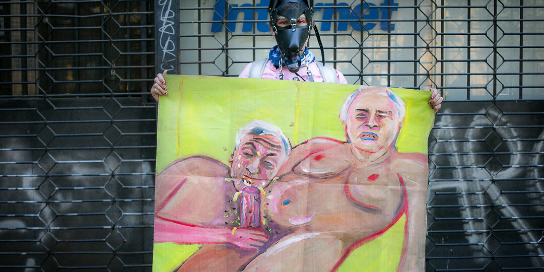 Performance: "PornoTerrorismo" frente a la casa principal de la Universidad Católica de Chile.