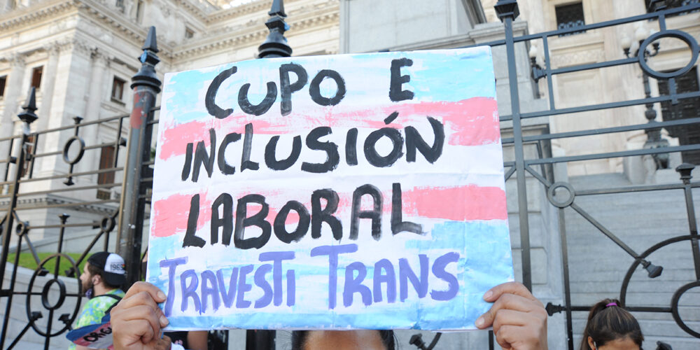 Con la consigna «¡Ley nacional de Cupo e Inclusión laboral travesti trans ahora!», organizaciones de la diversidad sexual reclaman hace muchos tiempo a diputadxs el urgente tratamiento del proyecto de ley nacional de inclusión laboral y cupo para personas trans y travestis. El proyecto desde 2020 cuenta con dictamen de tres comisiones de la Cámara de Diputades: Mujeres y Diversidad (desde donde se impulsó), de Legislación del Trabajo, y de Presupuesto y Hacienda.