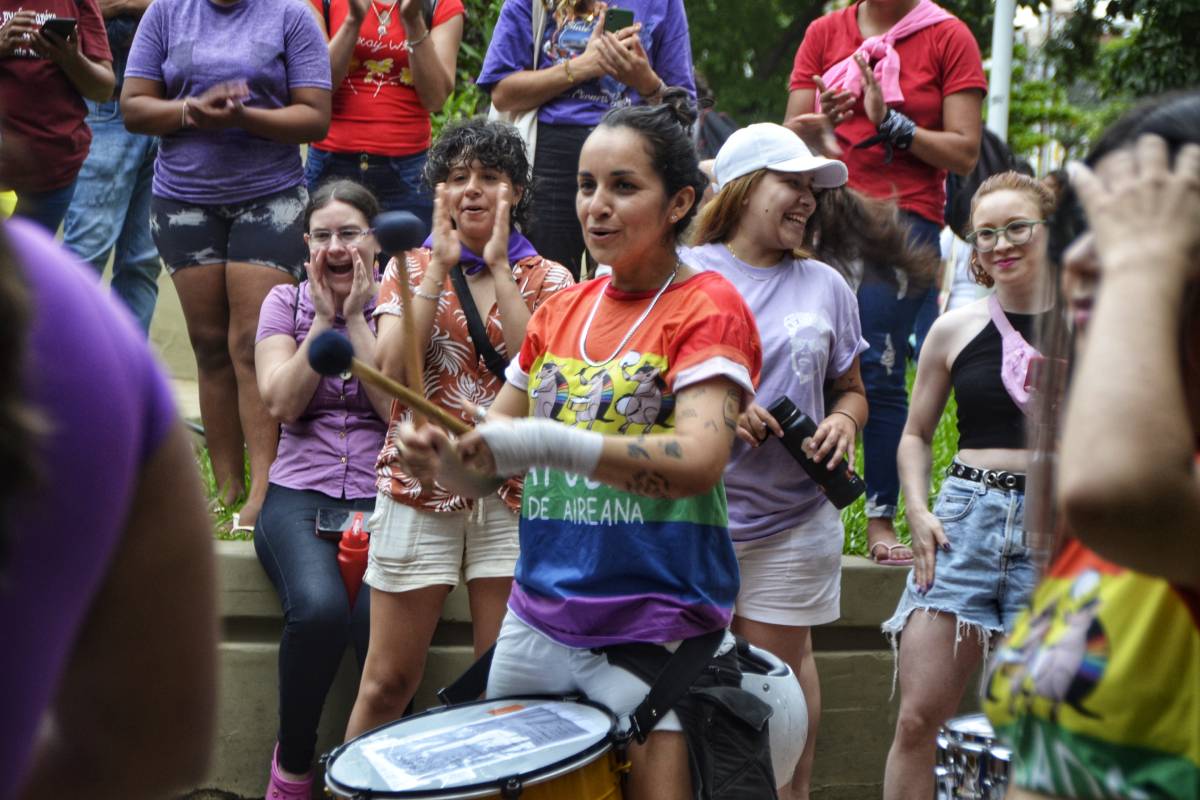 En ese momento, la activista Karla Avelar -junto a otras compañerxs- se puso de pie para protestar, formando una cadena humana.