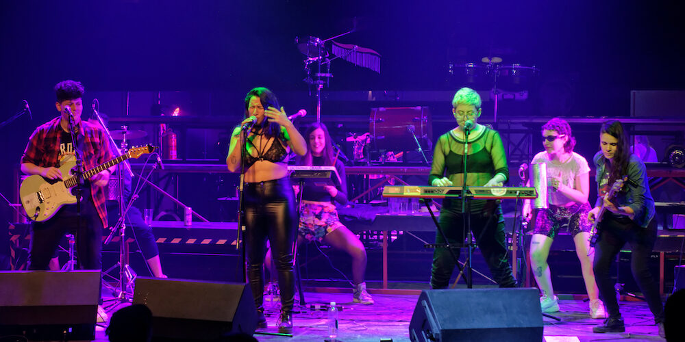 “Nosotres nos posicionamos en el escenario, hacemos lo que nos gusta y no damos explicaciones. Muchas veces las palabras excluyen y nosotres no queríamos que eso sucediera en nuestros shows. Hay sectores donde las palabras “patriarcado” o “transfeminismo” no llegan, porque son palabras que circulan en determinados sectores. Nuestra música está pensada para que toda la gente pueda acceder, que no se queden por fuera por no entender”, explica Noelia Sinkuna (coros y teclado). Noelia fue recientemente galardonada con el premio Gardel al Mejor Álbum de Folklore Alternativo por su proyecto solista.