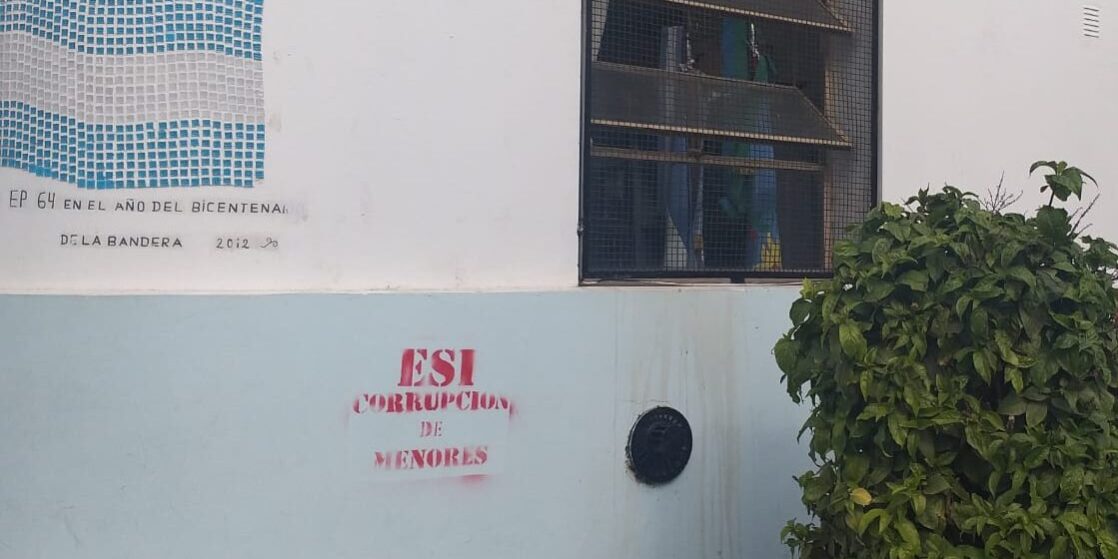LA PLATA, provincia de Buenos Aires. El jueves 31 de agosto y de forma coordinada y planificada, escuelas y jardines en La Plata fueron vandalizados con grafitis que dicen: «ESI es corrupción de menores», “ESI es pedofilia”. Este ataque se perpetra justo después de la Semana de la ESI -del 21 a 25 de agosto-, fecha que tiene como objetivo profundizar los contenidos, que estipula la Ley Nacional Nº 26150. La ley votada por el Congreso establece la obligatoriedad de la Educación Sexual Integral en todos los niveles educativos y jurisdicciones, con base en una serie de ejes: ejercer los derechos; cuidar el cuerpo y la salud; valorar la afectividad; reconocer la perspectiva de género; respetar la diversidad.