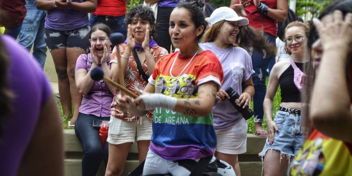 La movilización finalizó en la Plaza de la Democracia con la lectura del manifiesto y un festival artístico. Desde el escenario la arenga abrazó a las manifestantes al ritmo de una de las canciones más tradicionales de las marchas 8M y 25N: “Bailar con la compañera le gusta a usted, le gusta a usted”.