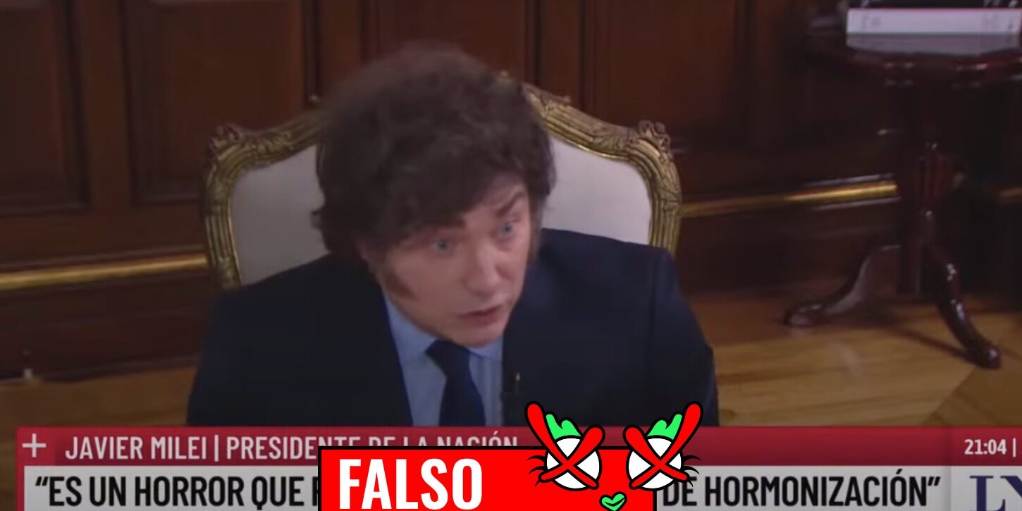 “¿Sabías que en la provincia de Buenos Aires existen 240 centros de hormonización? A mi me parece un horror. A vos te parece que un menor está en condiciones de saber? Desde mi punto de vista que le amputen los genitales a una criatura mientras le llenan la cabeza, eso de separar el género de la biología, no es gratis”, dijo Milei, esparciendo la misma desinformación que difunden a nivel global los grupos antiderechos.