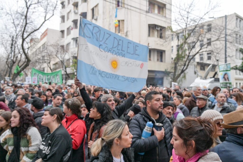 El lunes 16 de junio fueron los transfeminismos los protagonistas de la jornada. Luego de una reunión en la sede del Partido Justicialista (Matheu 130), marcharon hasta la casa de Cristina. De ese encuentro participaron dirigentas sociales, sindicalistas, senadoras, diputadas y espacios que integran Unión por la Patria, y también activismos de la diversidad. Entre elles también, muchas personas que no tienen una militancia partidaria o que se identifican con partidos de otros colores pero que sienten que el proceso contra Cristina es una afrenta más a la democracia.