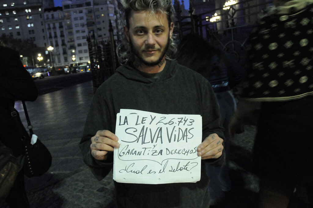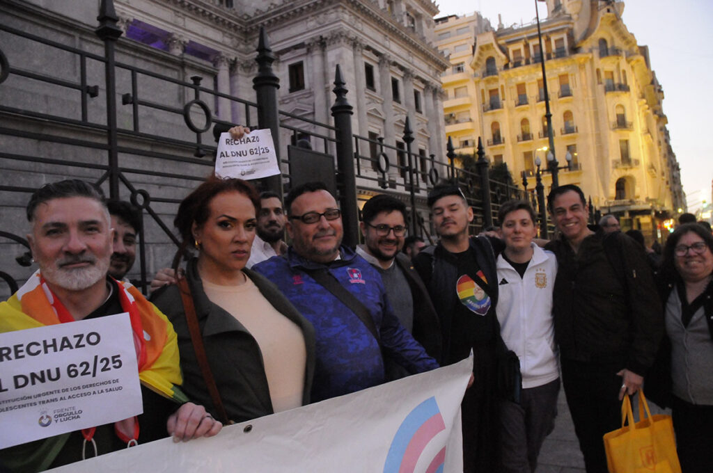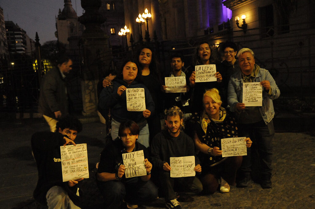 CIUDAD DE BUENOS AIRES, Argentina. Activistas y familiares de adolescentes travestis y trans realizaron ayer una acción para pedir al Congreso que rechace este miércoles los decretos de necesidad y urgencia (DNU 61 y 62/25) de Javier Milei que limitan la Ley de Identidad de Género.
