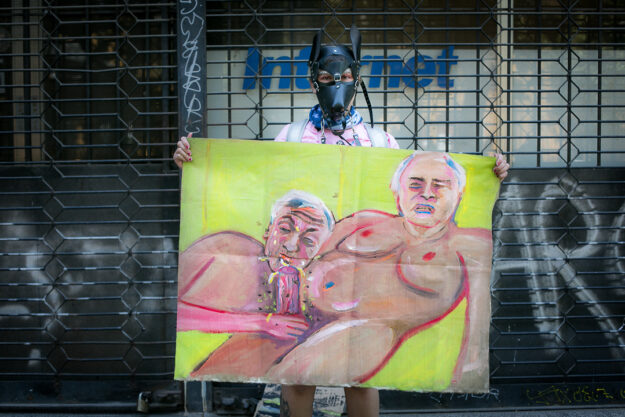 Performance: «PornoTerrorismo» frente a la casa principal de la Universidad Católica de Chile.