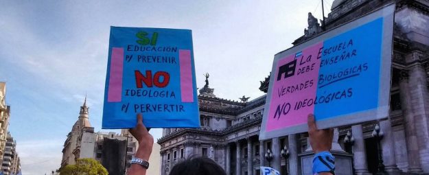 Los grupos antiderechos autodenominados “pro-vida”- alianza de católicos y evangélicos creada para frenar el proyecto de legalización de interrupción voluntaria del- se manifestaron ayer en Buenos Aires y en algunas ciudades del interior contra la ley de educación sexual integral (ESI). Entre las proclamas, dijeron querer derogar la ley de Identidad de Género y se mostraron contra todos los derechos de las personas LGBT.