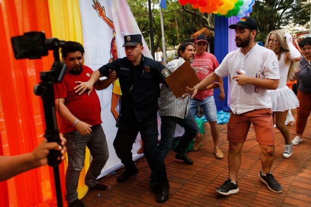 Celso Mirada “Kelembu”, concejal de Ciudad del Este, acompañado por un grupo de antiderechos, irrumpió en el Festival por la Igualdad y la Libertad.
