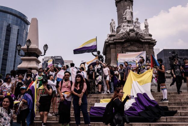 La bandera negra, blanca, violeta y amarilla flameó en las primeras Marchas No Binarias: una en Buenos Aires y otra en Ciudad de México. ¿Cuáles son los reclamos de estas poblaciones en América Latina?