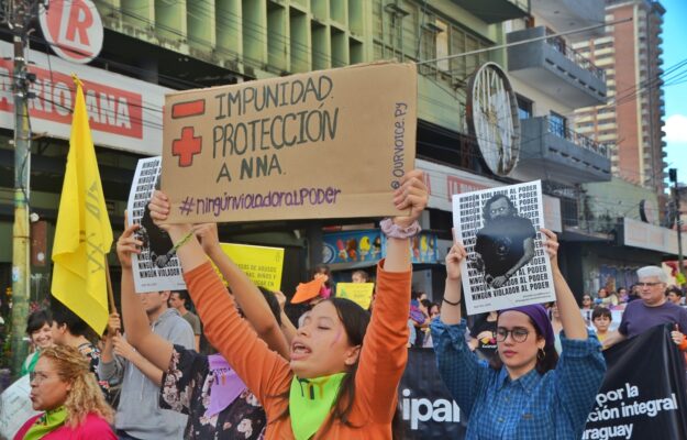 Organizaciones marcharon en Asunción para llamar la atención sobre el abuso sexual infantil, en rechazo a la asunción del senador electo Rafael Esquivel y del concejal electo Luis Fernando Ramos.