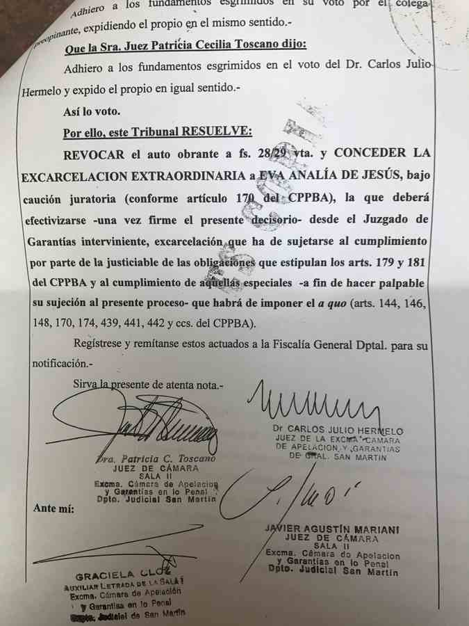The San Martín court granted extraordinary release to Eva Analía "Higui" de Jesús, accused of homicide and imprisoned since October 16 for defending herself against a group of men who tried to rape her because she is a lesbian, fatally wounding one of them. The news was confirmed to Presentes by her sister. "Now we're going for acquittal," said representatives from the Front of Organizations for Higui's Freedom.