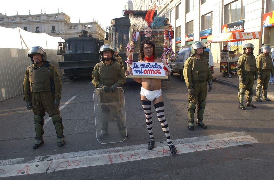 This September 4th marks the 20th anniversary of the creation of "El Che de los Gays" (The Gay Che), but my activism began long before that in the Historical Movement of Homosexual Liberation (Movilh Histórico), where I created and hosted "Triángulo Abierto" (Open Triangle), the first radio program for gays, lesbians, and trans people in Chile in 1993. From this platform, we engaged with and challenged national and international politics, art, and culture to repeal the punishment for consensual sodomy in our country, a victory finally achieved in 1999. Later, outside of Movilh Histórico, from a more libertarian and independent activism, the gay Che was born. The public interventions of "El Che de los Gays" have sought to intertwine homosexuality with sexual politics and civic activism, problematizing the urgent needs and challenges of postmodern societies, confronting the historical violence of class, gender, and identities, and showcasing bodies scarred by intolerance, discrimination, stigma, and the urgent needs of HIV/AIDS. My counter-cultural reading of Che challenges the neoliberal market's view of meaning, which trivializes Che's revolutionary utopias by profiting from his multinational image. I speak of a Che who remains active in today's social struggles, not as a printed t-shirt or just another symbol to be bought and sold, but a Che embodied in gay, lesbian, and trans liberationist bodies, enjoying, desiring, and fighting for political, sexual, cultural, and identity rights.