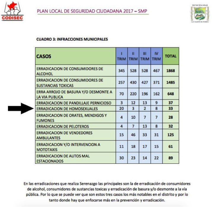 The latest Conflict Report published by the Public Prosecutor's Office of the City of Buenos Aires includes the figure of "men detained for violating Article 81" – the supply and demand of sex in public spaces. In both cases, the Peruvian and the Argentinian, the official statistics speak of the eradication and social cleansing carried out by the State against transvestites and trans women in prostitution.