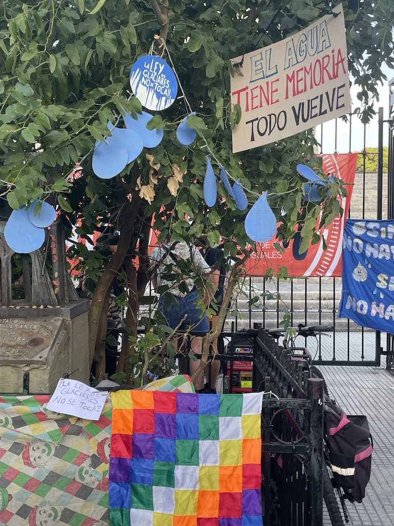For several weeks now, the "Hands Off the Glaciers Law" campaign has been mobilizing public opinion to condemn the proposed law and calling for various demonstrations. "We defend water and glaciers; more than 7 million people in the country's arid and semi-arid regions depend on them. The senators want to hand over the water to mining companies. Those behind this modification, this reform of the Glaciers Law, are the multinationals. From the territorial assemblies of San Juan, Mendoza, and Catamarca, which are fighting against mega-mining, we say: 'Mining companies out of the country!' Political power is complicit in handing over water and territories," Clarisa Néstor told us from Extinction Rebellion Argentina, at one of the recent demonstrations in front of Congress.