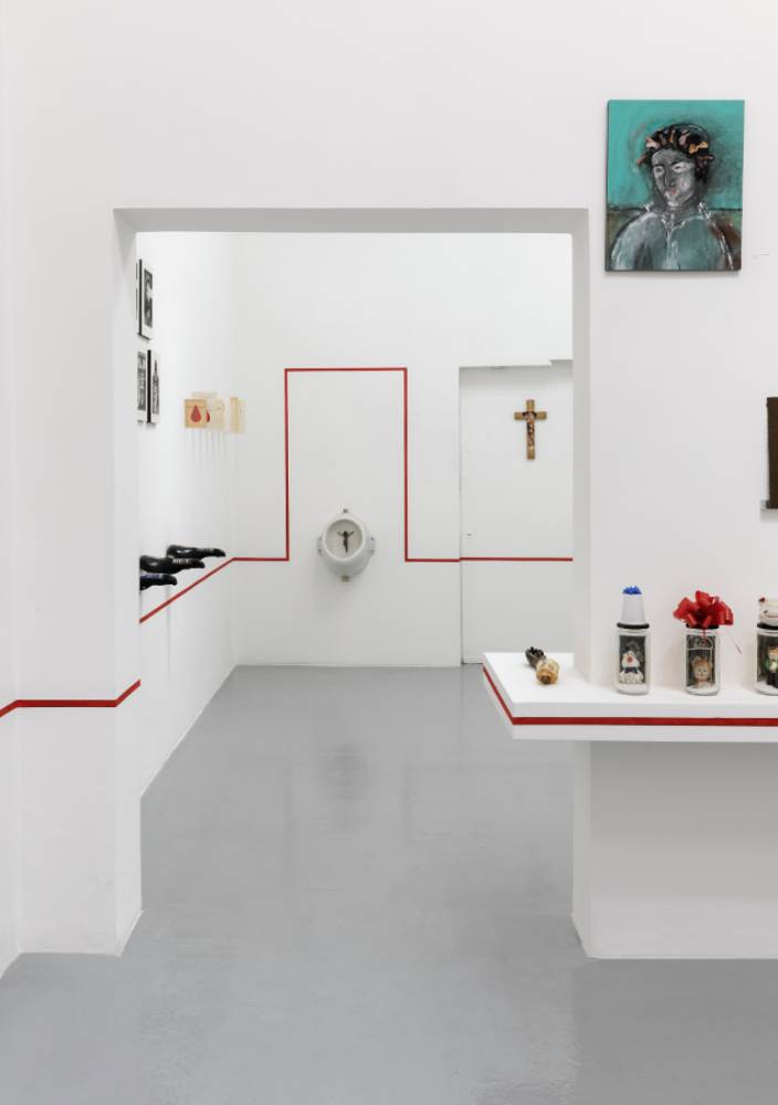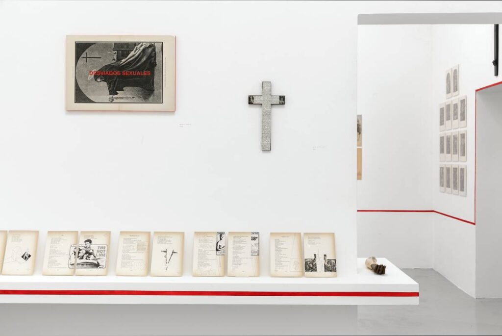 The songbook is filled with saints with enormous penises embedded in them, virgins with the word "AIDS" superimposed on them, and even a urinal with an image of Jesus crucified but without a cross. "The confrontation with religion was one of my first encounters/disencounters that led me to rethink the space that had shaped me ," he says. Now he speaks and constructs a memory without time to utter the following phrase: "As if that Jesus had somehow been the first homosexual stimulus since childhood."
