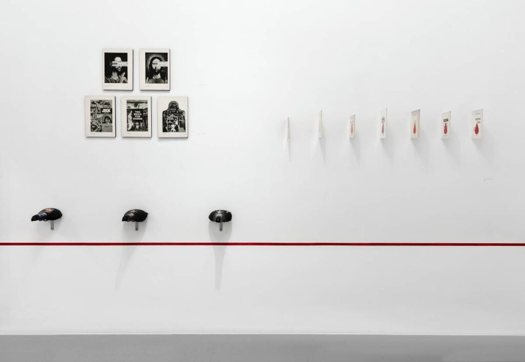 “I feel that showing these works somewhat addresses that era when these themes weren't very receptive to institutions,” says Charly. As he speaks, a red line envelops him and the entire exhibition. It's a line whose beginning and end are indistinguishable, infinite and self-contained. This piece pays homage to the installation by the Group Material collective , which consisted of another red line but depicted the entire history of HIV and AIDS in 1989. Now Charly looks at his creation again and speaks in the present tense: “These works have rage, a violent energy.”