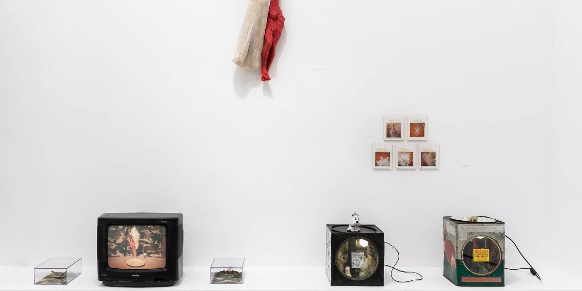“ It was a fear impossible to understand because it was something you couldn't talk about, and there wasn't much information available ,” Charly explains to Agencia Presentes . In the mid-90s, his sexual awakening exposed him to that “pink plague” that was widely condemned but about which little was known. “A university professor guided me through these readings, and those are the books that appear in several of the works in this exhibition,” he explains. These books, read today, reflect more guilt than facts. Now they reside in traps for wild animals, also stained with that iconic red; now their metallic mechanisms ensnare time and its prejudices.